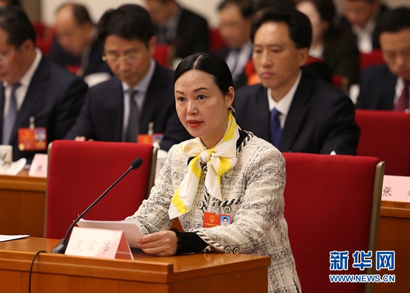 全國(guó)人大代表、四川好彩頭食品有限公司董事長(zhǎng)何敏在發(fā)言。新華網(wǎng)王釩攝
