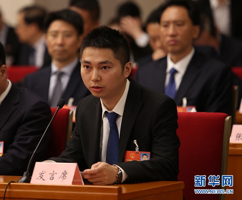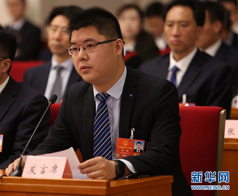 全國(guó)人大代表、四川省蒼溪縣白驛鎮(zhèn)岫云村黨支部書(shū)記李君在發(fā)言。新華網(wǎng)曹鵬攝