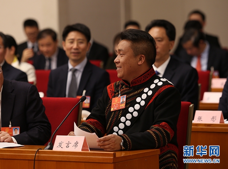 全國(guó)人大代表、四川省西昌市安哈鎮(zhèn)長(zhǎng)板橋村黨支部書(shū)記余彬身著著彝族傳統(tǒng)服飾進(jìn)行了發(fā)言,他認(rèn)為要走好鄉(xiāng)村振興發(fā)展道路,就要堅(jiān)定不移地走生態(tài)優(yōu)先、綠色發(fā)展之路。余彬所在的長(zhǎng)板橋村就是很好的例子。以前的村子交通落后,群眾生活水平不高,人均年收入不足2000元。黨的十八大以來(lái),在黨中央的關(guān)懷下,依托當(dāng)?shù)刎S富的旅游資源,村子找準(zhǔn)發(fā)展思路,大力發(fā)展鄉(xiāng)村旅游。2017年,觀光游客達(dá)60萬(wàn)人次,實(shí)現(xiàn)旅游收入3000余萬(wàn)元,全村的人均年收入達(dá)到11000多元。余彬最后用一句彝語(yǔ)感謝了黨和政府的好政策。