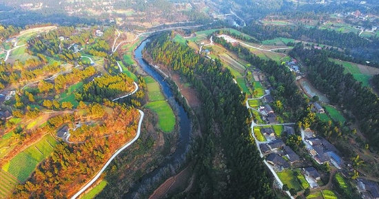 1月14日記者在閬中市棗碧鄉(xiāng)楊家河村上空俯拍的楊家河沿線風(fēng)光。近年來,當(dāng)?shù)卮罅Πl(fā)展鄉(xiāng)村旅游和香桃種植產(chǎn)業(yè),在楊家河村陸續(xù)投放10艘竹筏,設(shè)立專門農(nóng)產(chǎn)品交易區(qū),打造稻田捉魚、農(nóng)田拉水、皮劃艇漂流等旅游體驗(yàn)項(xiàng)目。目前該村新開辦農(nóng)家樂8家,旺季日均接待游客達(dá)到1500人次。本報(bào)記者李向雨攝