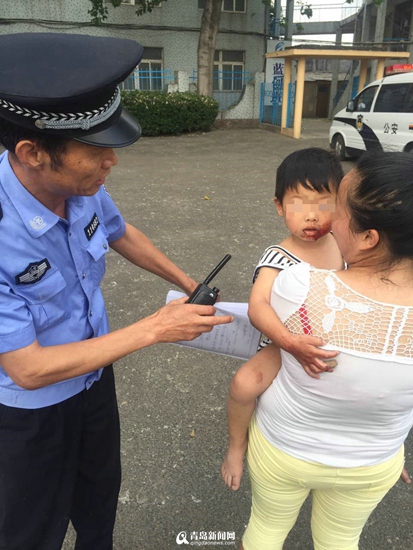聰聰家住在青島中韓街道某學校的院內,家住二樓,一樓就是該學校的食堂操場。民警了解情況后,立即先到樓后院查看,發(fā)現(xiàn)地下有點血漬。跟著地下的血漬圍著學校進行全面排查,詳細打聽,最終在學校的食堂處找到了孩子。見到孩子,廖女士一把抱住孩子,跟孩子哭做一團。