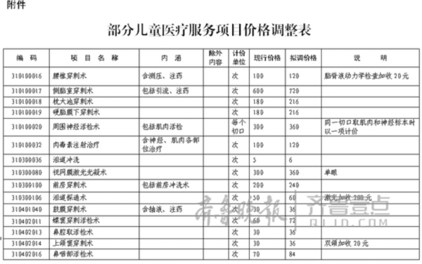 記者從煙臺市物價部門了解到,根據(jù)《關于印發(fā)〈貫徹國衛(wèi)醫(yī)發(fā)〔2016〕21號文件加強兒童醫(yī)療衛(wèi)生服務改革與發(fā)展工作方案〉的通知》(魯衛(wèi)醫(yī)字〔2016〕31號)的要求,煙臺市調(diào)整部分兒童醫(yī)療服務價格。6歲(含)以下兒童手術(shù)價格,在現(xiàn)行價格基礎上提高20%。6歲(含)以下兒童一般治療操作、有創(chuàng)活檢、探查等項目價格,在現(xiàn)行價格基礎上加收20%。