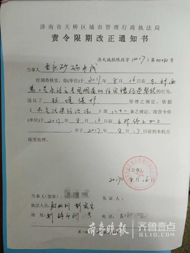 濟(jì)南天橋區(qū)執(zhí)法一中隊(duì)于8月16日向該家餐飲業(yè)戶下達(dá)了《濟(jì)南市天橋區(qū)人民政府關(guān)于依法關(guān)閉違法餐飲項(xiàng)目的通告》、《告知書》、《責(zé)令限期整改通知書》;同時(shí)區(qū)城管執(zhí)法局一中隊(duì)組織執(zhí)法人員對該處餐飲業(yè)戶經(jīng)營房內(nèi)作業(yè)物品、加工材料、門頭牌匾等進(jìn)行了搬離及拆除,并對該處房屋進(jìn)行了斷水?dāng)嚯姶胧婪▽υ摌I(yè)戶進(jìn)行關(guān)門停業(yè)。