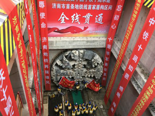 “前進一號”盾構(gòu)機自2016年7月31日濟-演區(qū)間左線在演馬莊西站順利始發(fā), 2017年3月1日濟-演區(qū)間在濟南西站順利接收;“前進二號”盾構(gòu)機自2016年9月15日濟-演區(qū)間右線在演馬莊西站順利始發(fā),2017年2月20日濟-演區(qū)間右線順利接收;“前進一號”盾構(gòu)機經(jīng)過濟南西站轉(zhuǎn)場,于2017年3月25日,再次“披甲上陣”,沿大-濟區(qū)間左線在濟南西站成功始發(fā),并在2017年8月29日在大楊莊站順利接收;“前進二號”盾構(gòu)機2017年4月15日大-濟區(qū)間右線在濟南西站順利始發(fā),于今日在大楊莊站成功貫通。“前進一號”、“前進二號”盾構(gòu)機完成掘進使命。