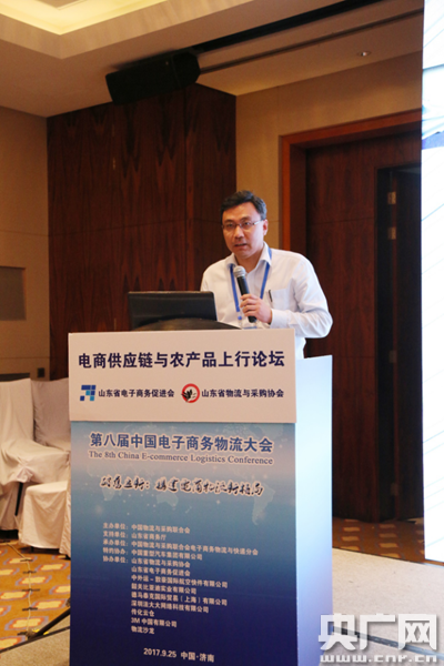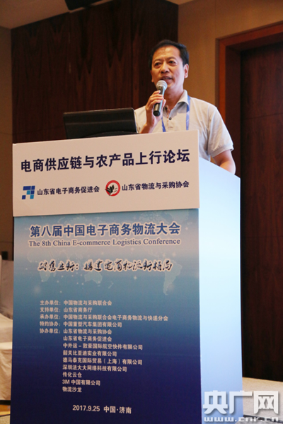 央廣網(wǎng)濟(jì)南9月25日消息(記者 劉?9月25日,第八屆中國電子商務(wù)物流大會在濟(jì)南召開。期間,山東省電子商務(wù)促進(jìn)會與山東省物流與采購協(xié)會共同舉辦電商供應(yīng)鏈與農(nóng)產(chǎn)品上行專題分論壇活動。中國物流與采購聯(lián)合會副會長兼秘書長崔忠付、山東省商務(wù)廳流通業(yè)發(fā)展處處長廉波、山東省電子商務(wù)促進(jìn)會秘書長婁雷震、山東省物流與采購協(xié)會執(zhí)行會長王國利等領(lǐng)導(dǎo),各地政府物流、電子商務(wù)工作牽頭部門代表,相關(guān)行業(yè)協(xié)會,電商、零售、物流、快遞、跨境、倉儲、園區(qū)、貨代、信息化等企業(yè)代表200余人參加分論壇活動。