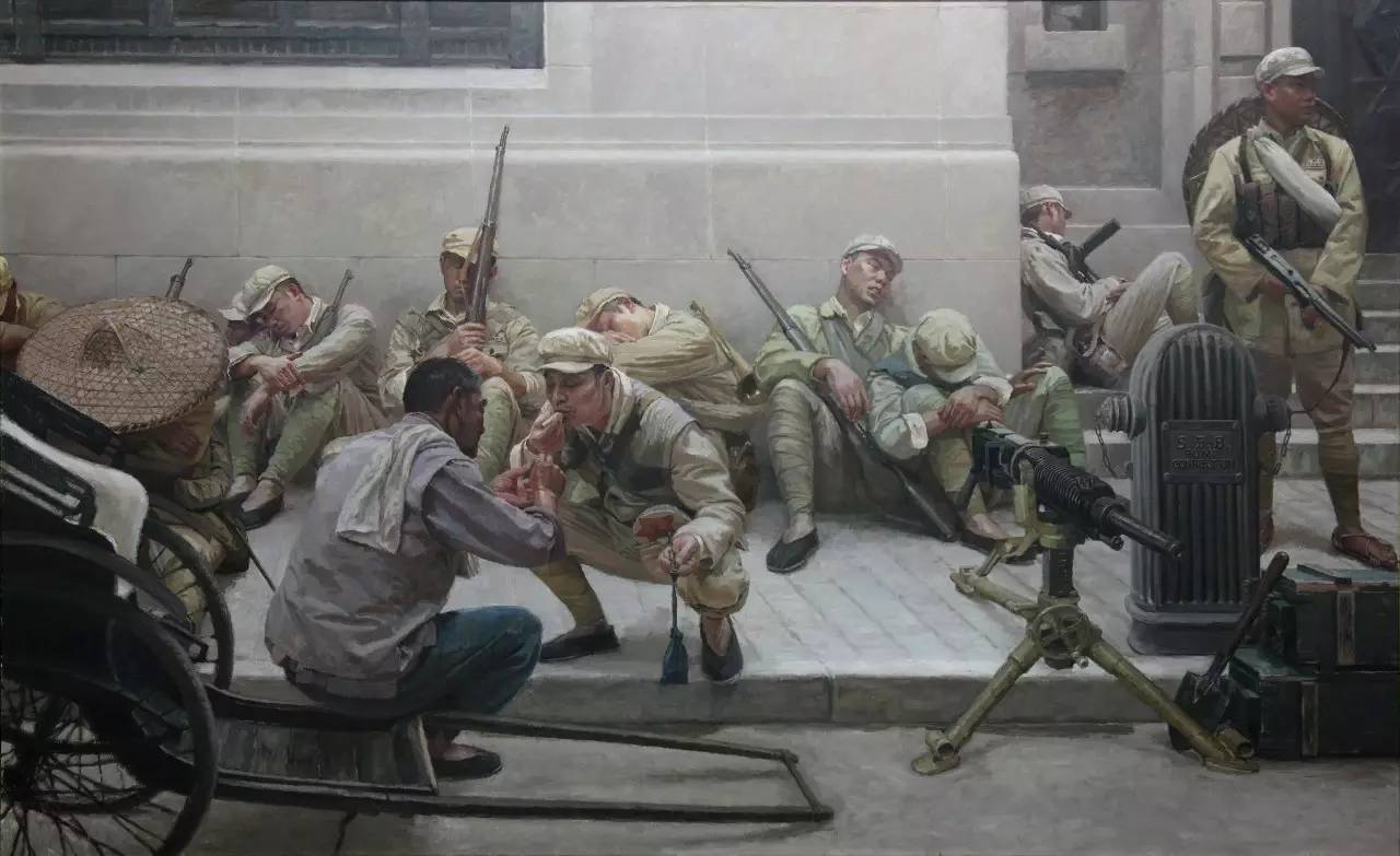 王涇《軍營記事》油畫