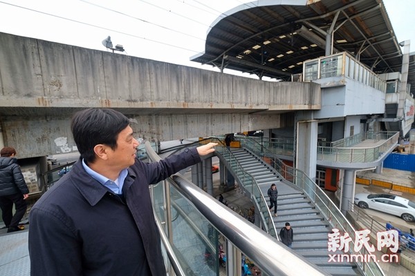 【新民晚報(bào)·新民網(wǎng)】寶山區(qū)水產(chǎn)路,人行天橋,上去30臺(tái)階,下去30級(jí)臺(tái)階,再爬30級(jí)臺(tái)階進(jìn)入軌道交通3號(hào)線站臺(tái),這里靠近寶楊路碼頭,乘客帶著大包小包爬上爬下,吃力,老人小孩更吃力。