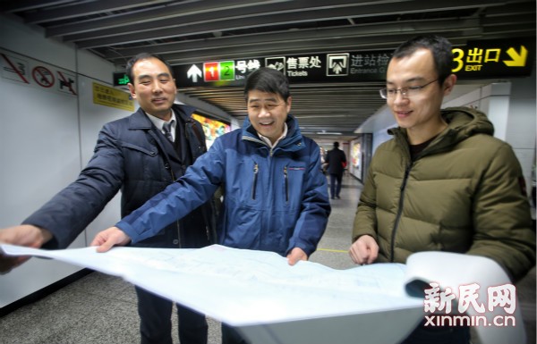圖說:王如路委員(中)和同事正在看圖紙 新民晚報記者 張龍/攝