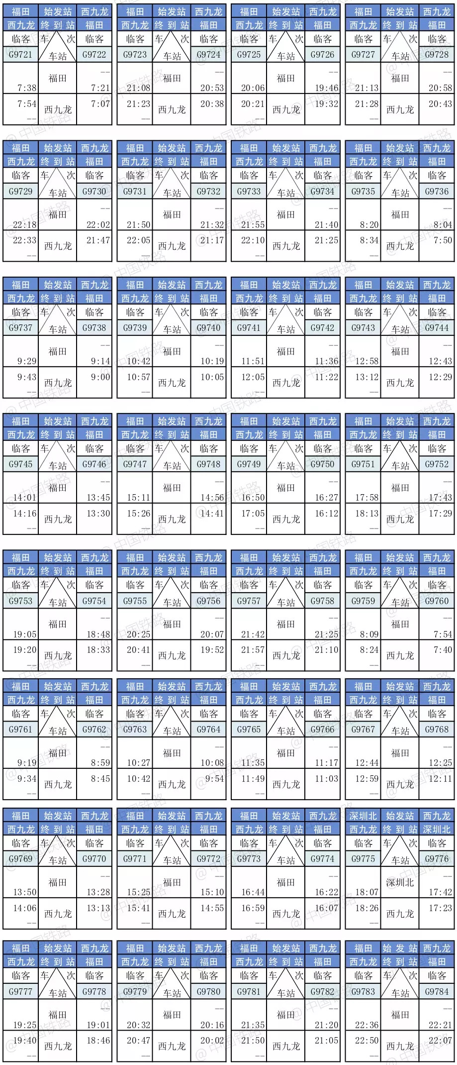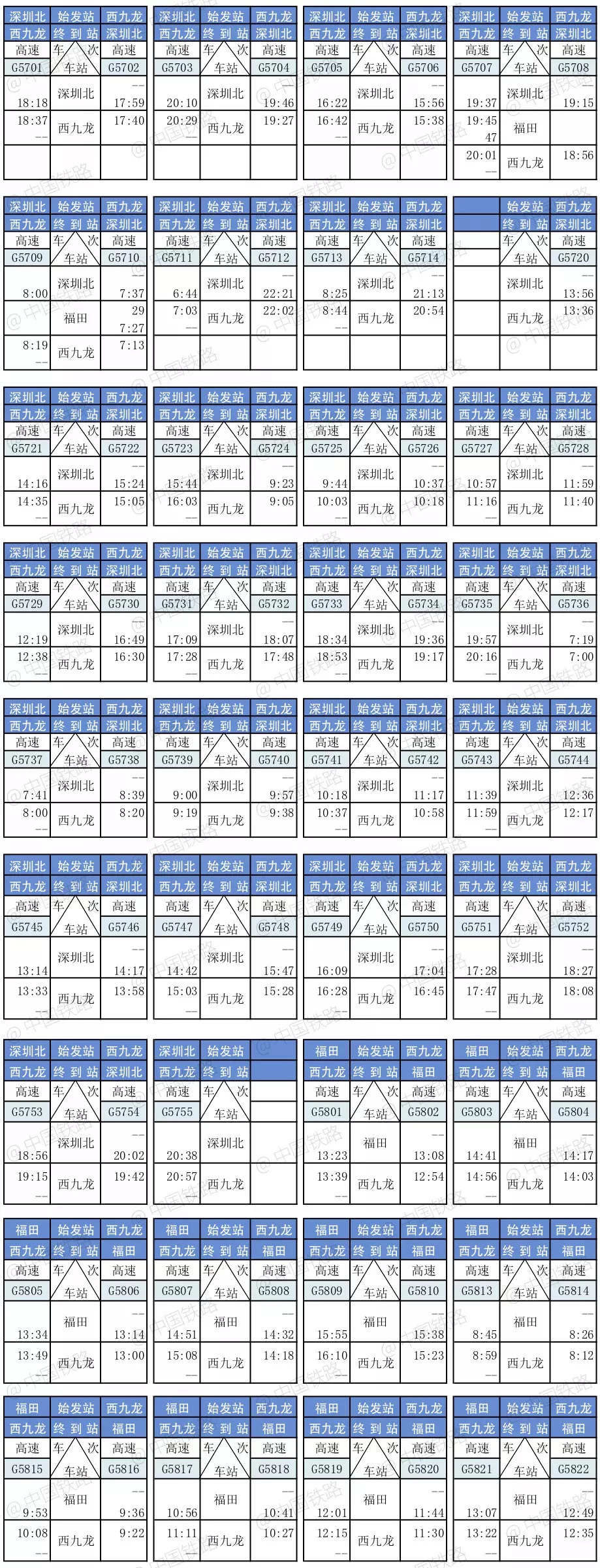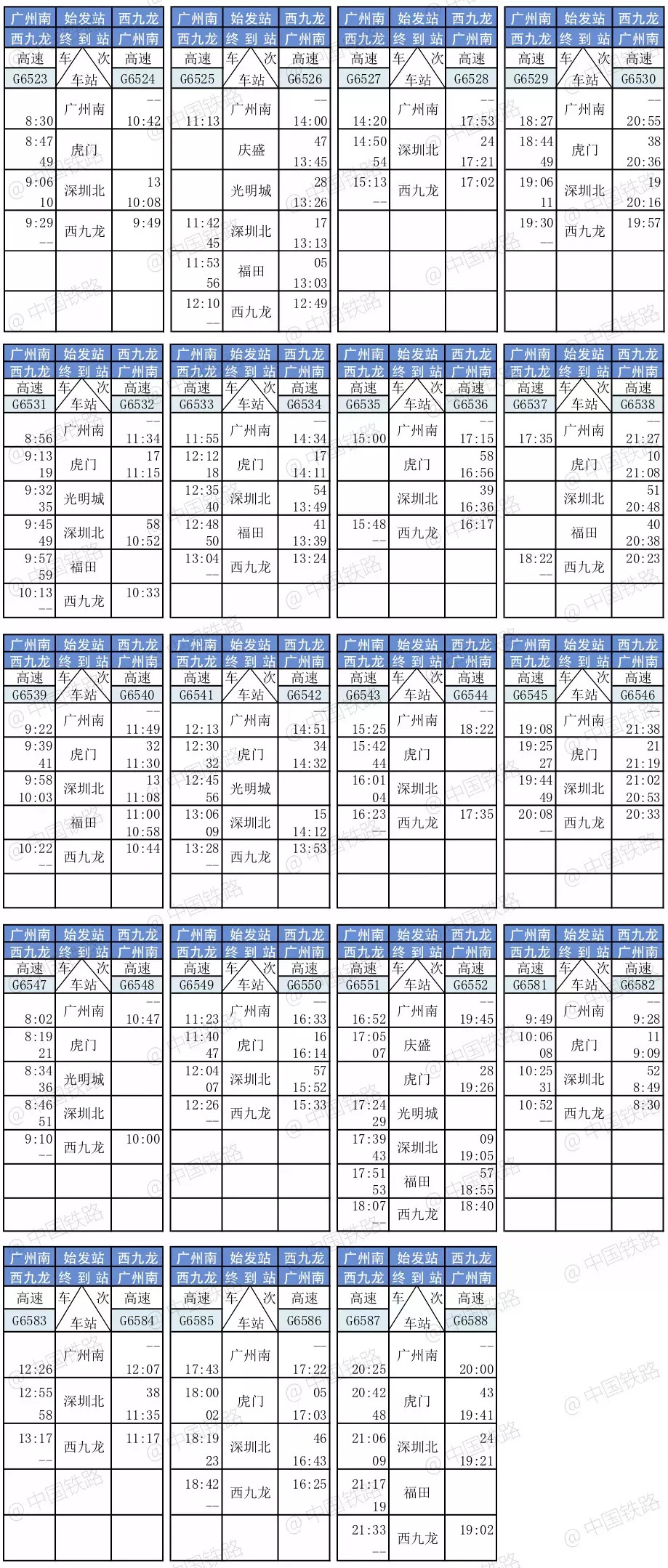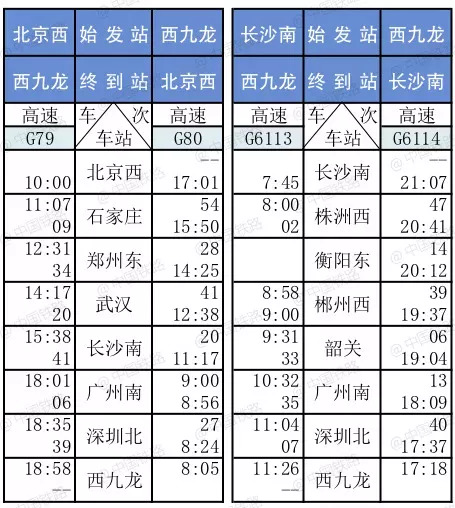 廣深港高鐵香港段開通運(yùn)營后,可通達(dá)北京、上海、石家莊、鄭州、武漢、長沙、杭州、南昌、福州、廈門、汕頭、貴陽、桂林、昆明等城市,到達(dá)內(nèi)地40多個車站,將大大拉近香港與內(nèi)地城市間的時(shí)空距離。其中,從香港西九龍站出發(fā),至深圳福田站的列車最短運(yùn)行時(shí)間14分鐘,至廣州南站的列車最短運(yùn)行時(shí)間47分鐘,至上海虹橋站的列車運(yùn)行時(shí)間為8小時(shí)17分鐘,至北京西站的列車運(yùn)行時(shí)間為8小時(shí)56分鐘。