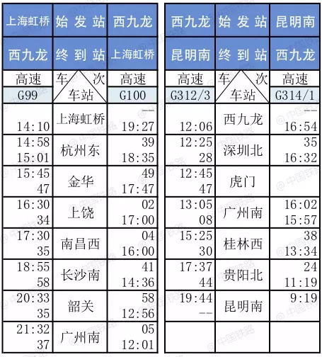 內(nèi)地主要車站至香港西九龍二等座票價(jià)表(人民幣)
