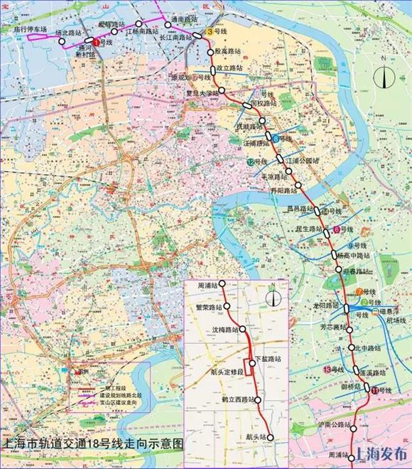 18號(hào)線一期工程自長(zhǎng)江南路站至航頭站,全長(zhǎng)36.8公里,車站26座。目前已開工18座車站。