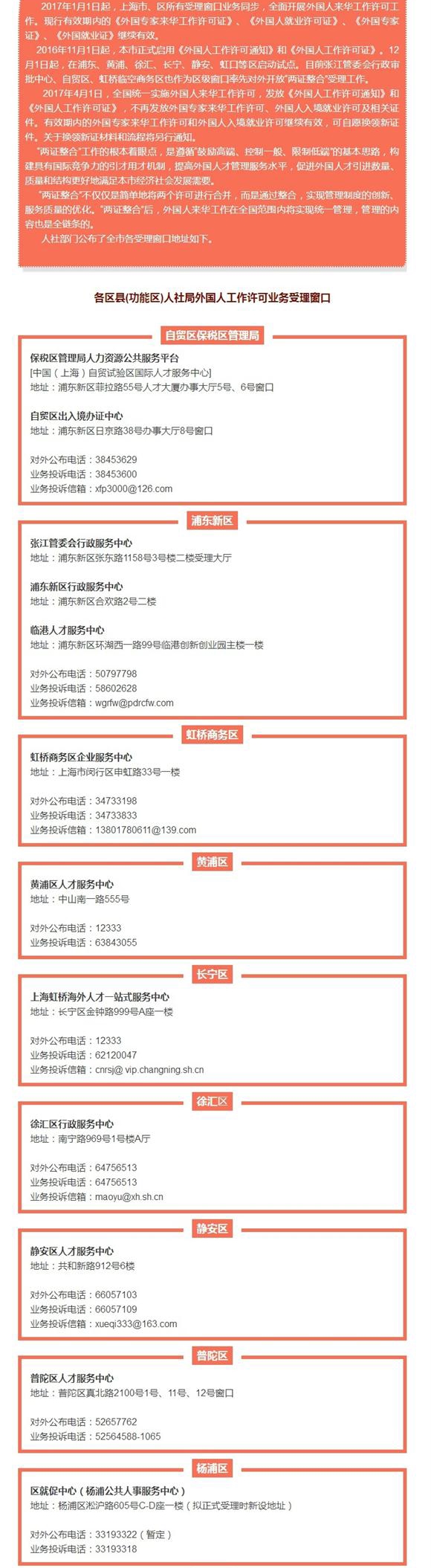 關(guān)鍵詞:上海市;外國(guó)人工作許可;受理地址