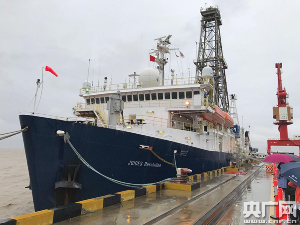 美國“決心號(hào)”鉆探船?坑谏虾D细鄞a頭 央廣網(wǎng)記者唐奇云 攝