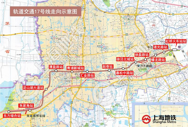 據(jù)了解,17號線全長35.3公里,全線共設(shè)虹橋火車站(與2、10號線換乘)、諸光路站、蟠龍路站、徐盈路站、徐涇北城站、嘉松中路站、趙巷站、匯金路站、青浦新城站、漕盈路站、淀山湖大道站、朱家角站、東方綠舟站13座,其中高架站6座、地下站7座。