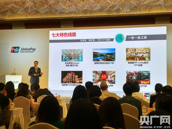 銀聯國際相關負責人介紹“暑假持卡人回饋季”活動 央廣網記者林馥榆 攝