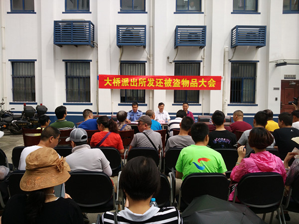 7月7日上午,上海楊浦公安分局大橋派出所舉行集中發(fā)還被盜物品活動,10多名受害群眾從民警手中領(lǐng)回了現(xiàn)金、首飾、手機(jī)、電瓶車等被盜物品。