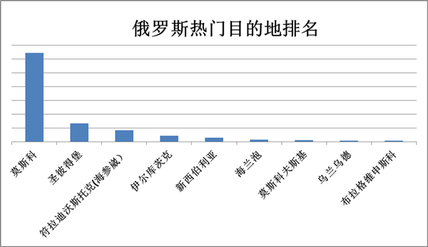 哪些城市的市民更熱衷赴俄羅斯旅游?從報告發(fā)布的排名看,前十名是上海、北京、哈爾濱、廣州、深圳、成都、武漢、杭州、長春、南京。