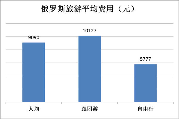 從費用看,赴俄羅斯旅游人均費用超過9000元,其中跟團游平均10127元,自由行5777元。從北京等地出發(fā)的跟團游線路,最低只需5000元左右,最高的超過3萬元。