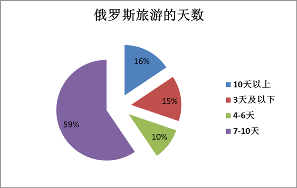 59%的中國游客赴俄羅斯在7到10天,有16%的人一次旅游10天以上。