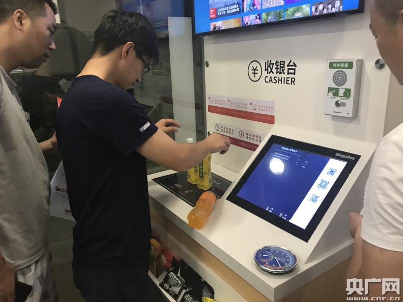 市民在無人超市內(nèi)自助結(jié)賬付款
