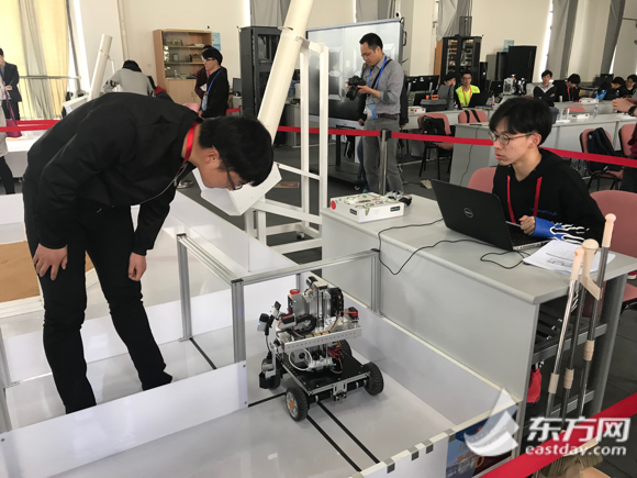 在上海信息技術(shù)學(xué)!耙苿(dòng)機(jī)器人”決賽現(xiàn)場(chǎng),據(jù)專(zhuān)家介紹,移動(dòng)機(jī)器人項(xiàng)目是集環(huán)境感知、路徑規(guī)劃、動(dòng)作控制與規(guī)劃等多功能于一體的綜合競(jìng)賽項(xiàng)目,代表機(jī)電一體化的最高成就。本次競(jìng)賽上海市共有12個(gè)參賽隊(duì)參加,在一天半的時(shí)間內(nèi)通過(guò)編程調(diào)試,使機(jī)器人在自主運(yùn)行狀態(tài)下,完成找到操場(chǎng)中的兒童(使用不同編號(hào)的臺(tái)球代替)并將其送至對(duì)應(yīng)家庭的任務(wù)。