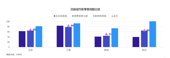 報(bào)告從企業(yè)活躍度、消費(fèi)者參與度、政府扶持度等多個(gè)維度進(jìn)行綜合分析,最終得出一系列新零售指數(shù),用于評(píng)估一座城市的新零售活力。