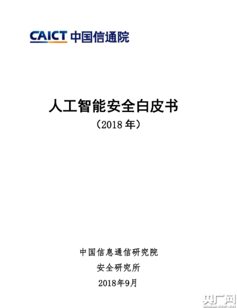 中國(guó)信息通信研究院安全研究所發(fā)布《人工智能安全白皮書》(央廣網(wǎng)發(fā) 世界人工智能組委會(huì) 供圖)