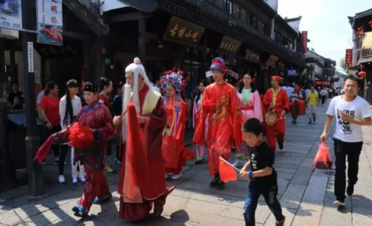 是否向往鳳冠霞帔、鑼鼓喧天的傳統(tǒng)婚禮?國(guó)慶長(zhǎng)假期間,游客可以在楓涇古鎮(zhèn)觀摩和體驗(yàn)到傳統(tǒng)水鄉(xiāng)婚典魅力,感受婚典中新人的浪漫與溫馨。