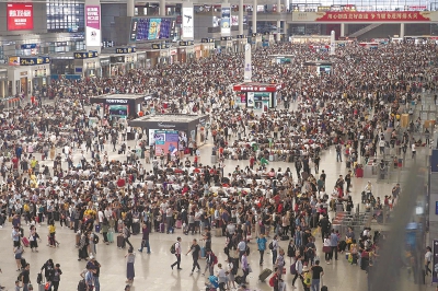圖片說明:三大火車站昨日發(fā)送旅客突破55萬人,其中虹橋火車站客流達到歷史新高29.9萬人。/晨報記者 朱影影
