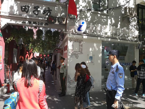 圖說:針對田子坊大客流,黃浦警方適時開啟限流模式。 黃埔警方 供圖