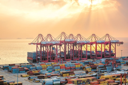 洋山深水港全自動(dòng)碼頭。視覺(jué)中國(guó)供圖