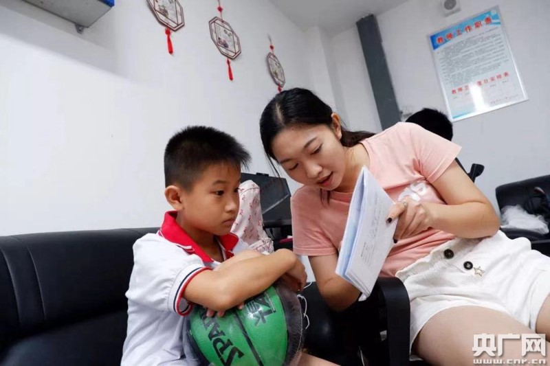 志愿者為學(xué)生評估“成長檔案”(央廣網(wǎng)發(fā) 華東師范大學(xué)提供)