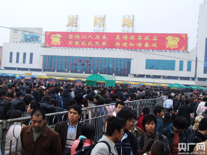 2006年春運,阜陽站前民工潮涌。(央廣網(wǎng)發(fā) 中國鐵路上海局集團有限公司提供)