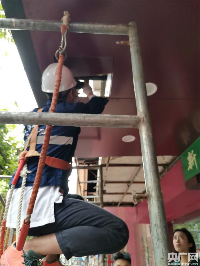對店招進行緊急檢查(央廣網(wǎng)記者 周洪 攝)