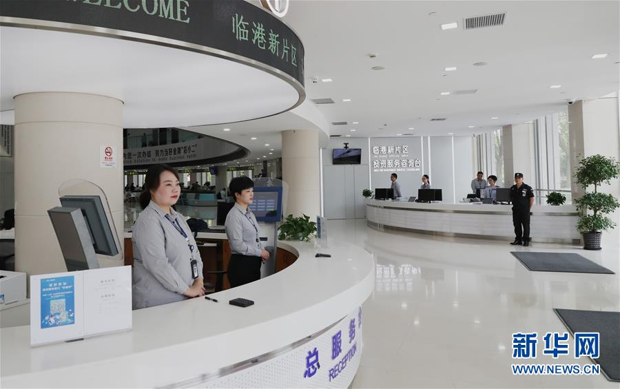 這是8月20日拍攝的中國(上海)自由貿(mào)易試驗(yàn)區(qū)臨港新片區(qū)行政服務(wù)中心內(nèi)景。新華社記者 方喆 攝