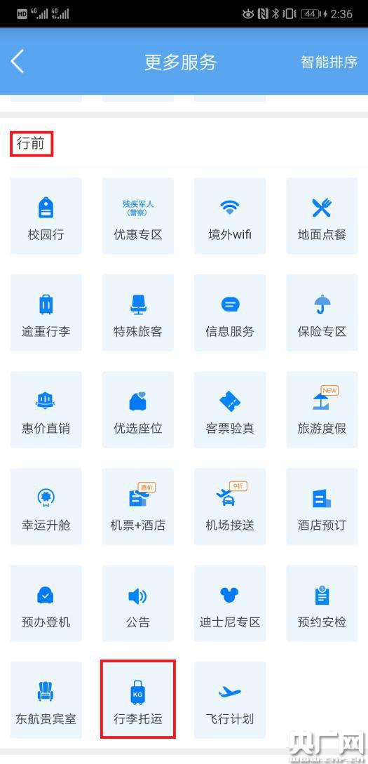 2.進入【行前】界面,點擊【行李托運】