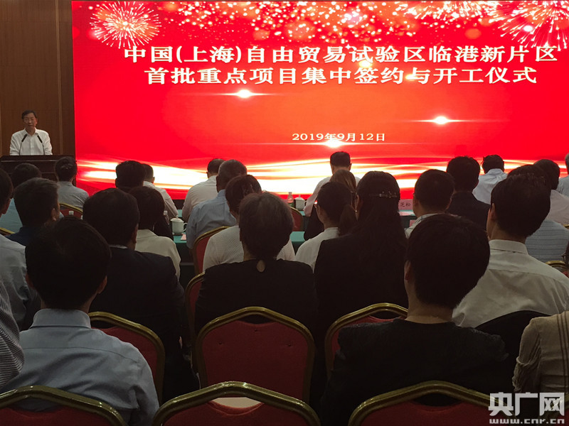 上海自貿(mào)區(qū)臨港新片區(qū)首批重點(diǎn)項(xiàng)目今天簽約開(kāi)工 (央廣記者吳善陽(yáng)攝)