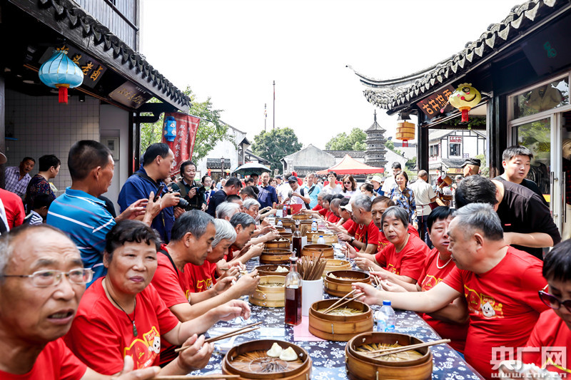 南翔“小籠長(zhǎng)街宴”請(qǐng)來了35對(duì)新中國同齡人伉儷(央廣網(wǎng)發(fā) 主辦方供圖)
