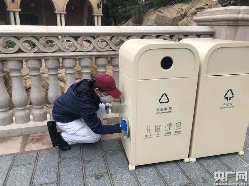 迪士尼樂(lè)園的演職人員在進(jìn)行清潔工作(央廣記者楊靜 攝)