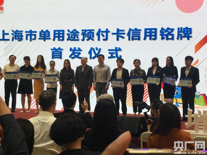 首批單用途預(yù)付卡信用銘牌頒發(fā)(央廣記者 吳善陽 攝)