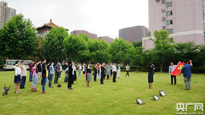 本次紅色行走的起點位于國福路51號的一棟三層小樓,這里曾是《共產(chǎn)黨宣言》中文全譯本首譯者陳望道老校長的寓所,后辟建為《共產(chǎn)黨宣言》展示館。在校黨委副書記、副校長周亞明的帶領(lǐng)下,來自物理學(xué)系黨委、生命學(xué)院生物化學(xué)與分子生物學(xué)系教工黨支部、信息學(xué)院電子工程系教師黨支部、管理學(xué)院信息管理與信息系統(tǒng)系黨支部的60余名黨員代表在《共產(chǎn)黨宣言》展示館前重溫入黨誓詞。