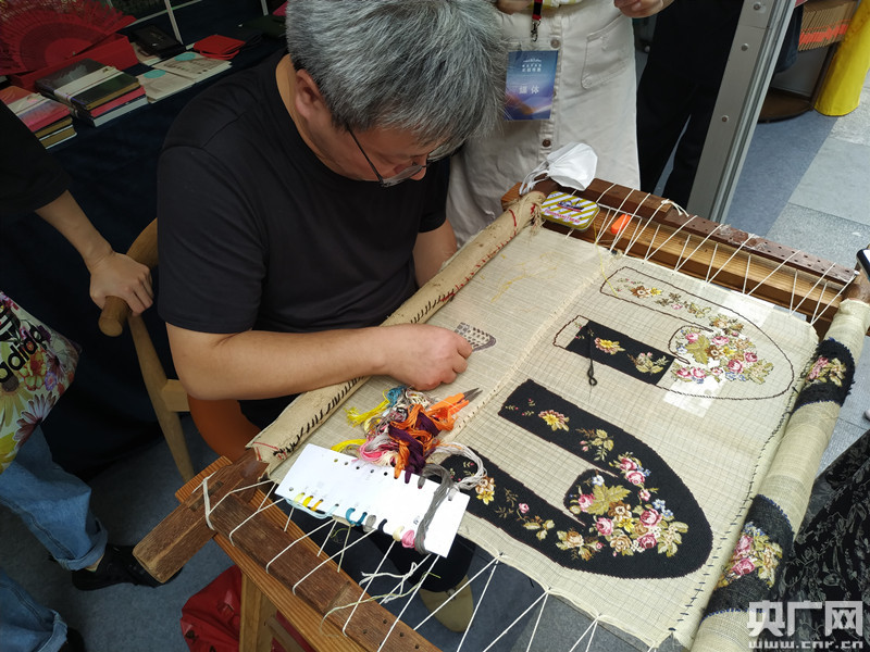 徐匯區(qū)展臺展示絨繡武康大樓(央廣網(wǎng)記者林馥榆 攝)