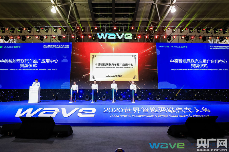 活動(dòng)現(xiàn)場(chǎng),中德智能網(wǎng)聯(lián)汽車推廣應(yīng)用中心在2020世界智能網(wǎng)聯(lián)汽車大會(huì)上正式揭牌。