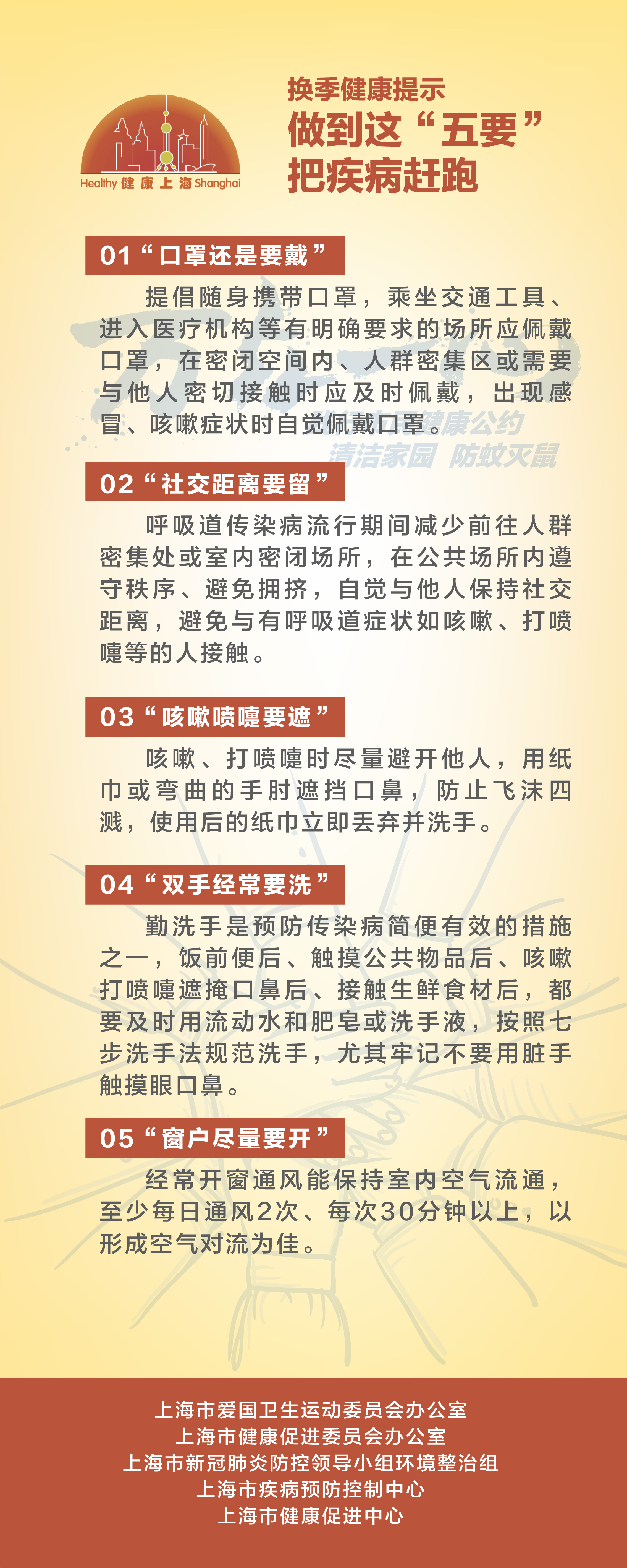 備口罩、勤洗手、常通風,外出不扎堆、聚會不忘形、放松不放縱!市健康促進中心表示,對于新冠疫情仍要外防輸入、內防反彈,希望每個市民都能穿好“無形的防護服”,金秋佳節(jié)每個家庭健康又幸福。