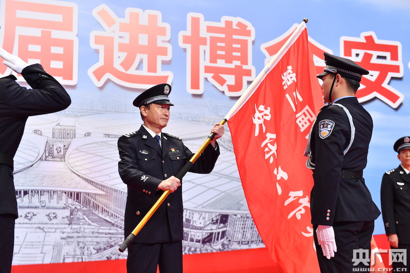 10月25日,上海市公安局舉行第三屆進(jìn)博會安保誓師大會,市公安局領(lǐng)導(dǎo)向10個安保任務(wù)單位代表授戰(zhàn)旗。全市各警種、各分局800余名民警、輔警和保安代表鄭重宣誓,將牢記習(xí)近平總書記重要訓(xùn)詞和“越辦越好”的重托,以最嚴(yán)明的紀(jì)律、最飽滿的熱情、最專業(yè)的素養(yǎng),全力以赴投入各項安保工作,向世界展示上海公安鐵軍的優(yōu)良形象。