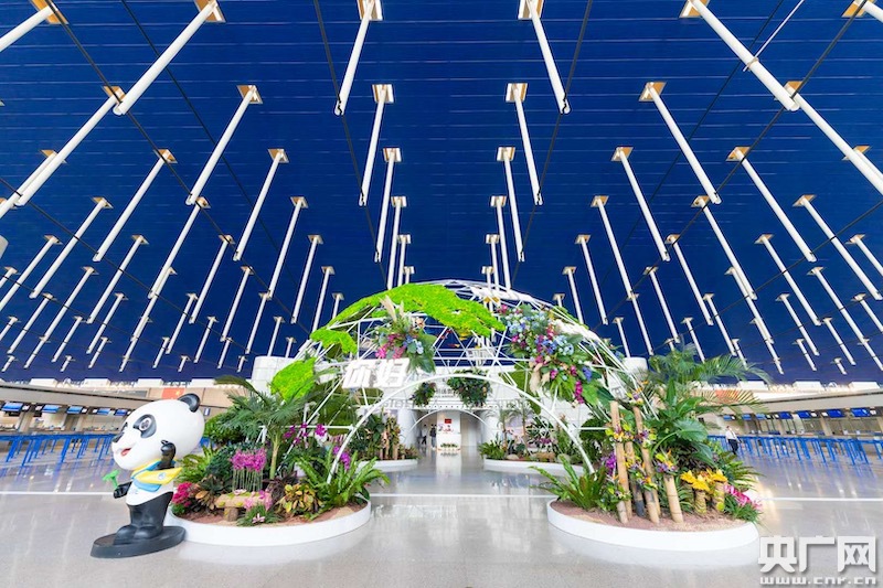 浦東機場營造了“綠水青山”別樣江南特色的氛圍展示區(qū)(央廣網(wǎng)發(fā) 上海機場供圖)