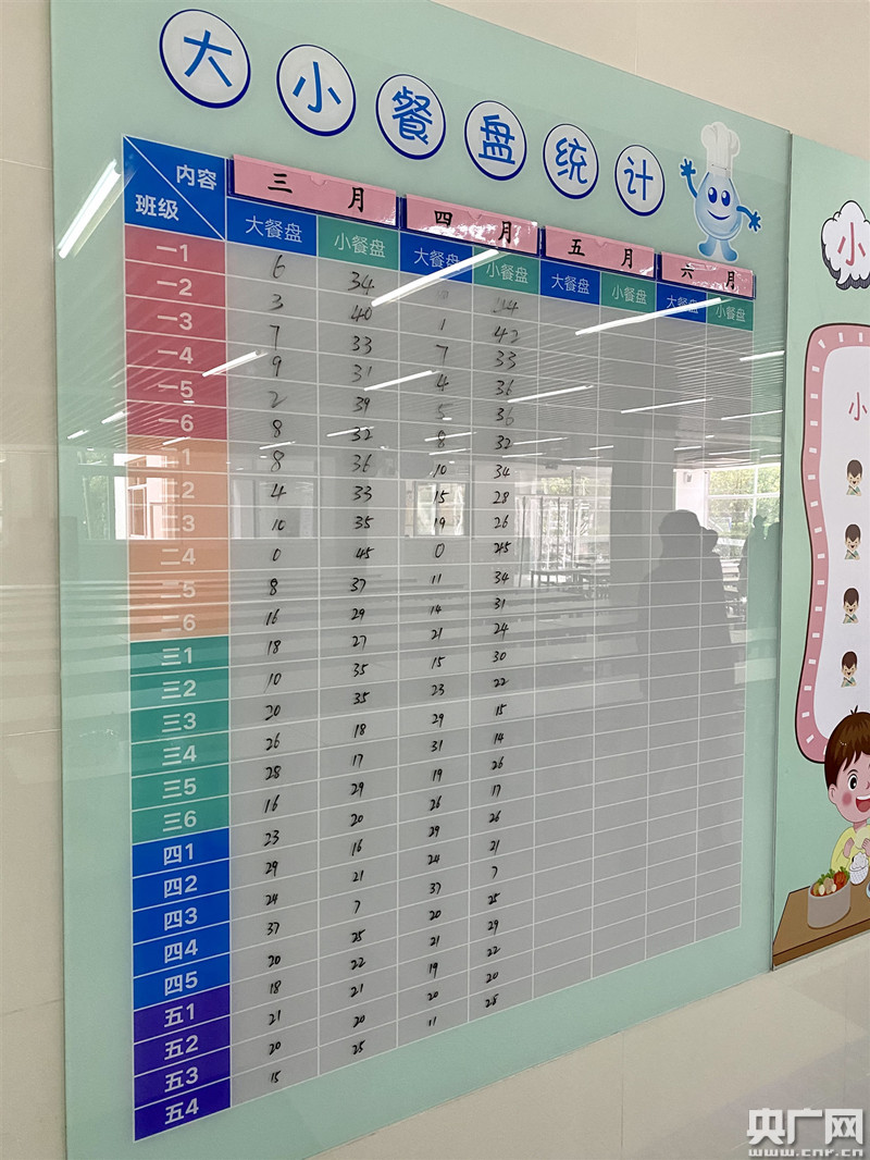 同時,為了更好落實“厲行節(jié)糧”行動,徐匯實驗小學面向全校家長、學生發(fā)放了一份電子問卷,對“大小餐盤”的選擇作了調(diào)查,并統(tǒng)計出了學生最喜愛的菜式TOP 10。借由大數(shù)據(jù)的反饋,學校發(fā)現(xiàn)以往造成學生浪費的一個重要原因是配置的餐食量稍大,此后不久,可供學生自行選擇的“大小餐盤制度”隨之形成:一、二年級餐盤含40克米飯,三分之二規(guī)定量菜品;三至五年級餐盤含55克米飯,規(guī)定量菜品。飯或菜不夠,可自行到自助加飯?zhí)幪砑。“區(qū)分大小餐盤,也是怕一年級弟弟妹妹實在吃不完,現(xiàn)在這樣的話大家可以去選擇適應(yīng)自己飯量的餐盤,對減少浪費會有更好的改善。”徐匯實驗小學五年級二班的楊俊豪說道。