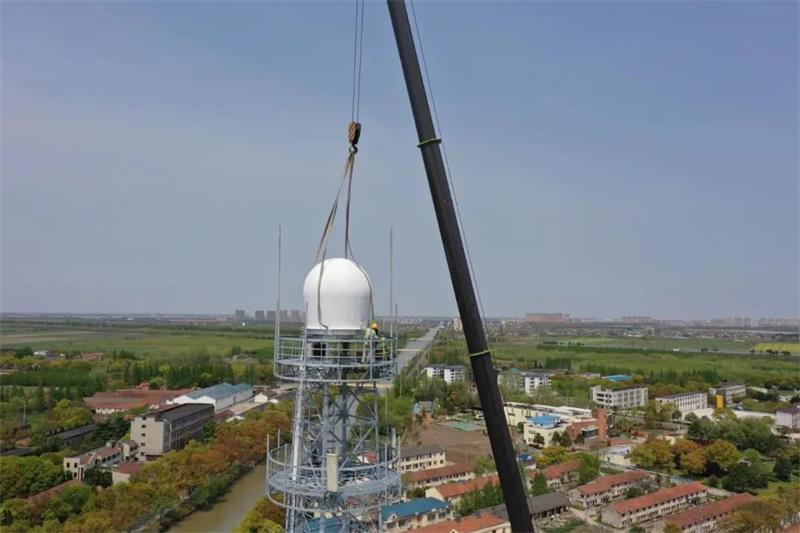 央廣網(wǎng)上海4月19日消息(記者傅聞捷)一頂直徑2.88米的乳白色雷達(dá)天線罩,被緩緩吊裝在高60米的上海崇明區(qū)長征通信鐵塔頂端,標(biāo)志著上海第五部X波段相控陣天氣雷達(dá)安裝完畢。