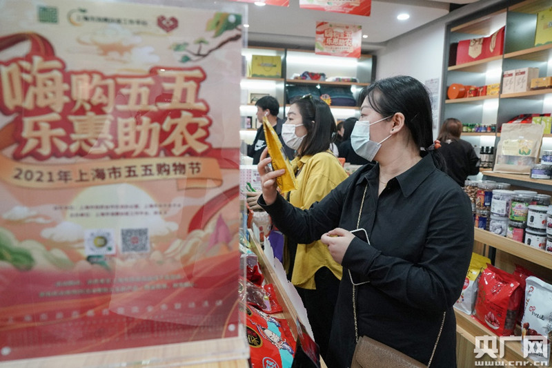 4月29日,上海市消費幫扶工作平臺聯(lián)合拼多多正式啟動“嗨購五五 樂惠助農(nóng)”活動,對上海全市11家“百縣百品”直營店進行超額補貼。(央廣網(wǎng)發(fā) 李林攝)