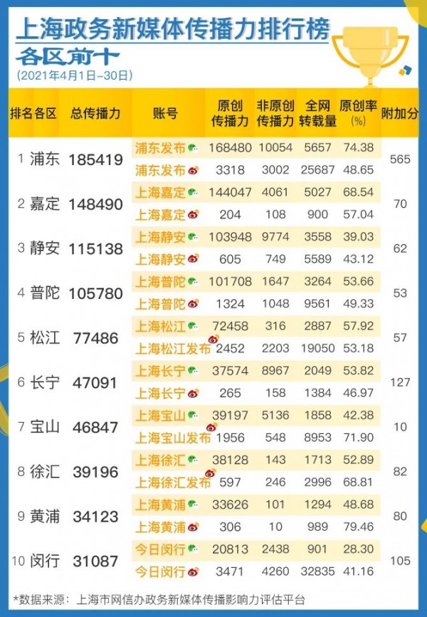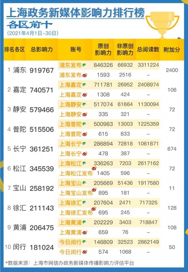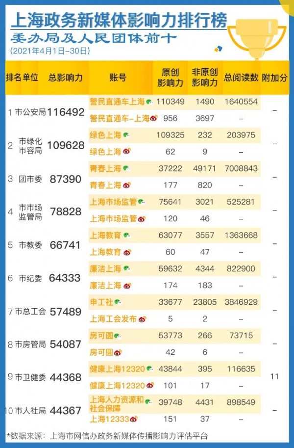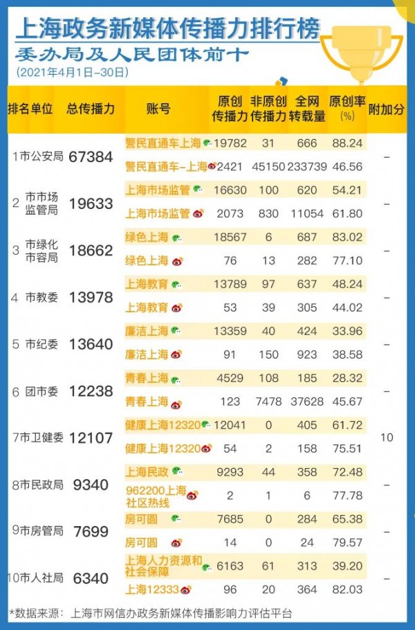 榜單由上海市委網(wǎng)信辦與上海市政府新聞辦公室聯(lián)合發(fā)布。數(shù)據(jù)來源于上海市委網(wǎng)信辦自主研發(fā)的“政務(wù)新媒體傳播影響力評(píng)估平臺(tái)”,目前該平臺(tái)覆蓋全網(wǎng)各渠道,納入了276個(gè)新聞客戶端、251家新聞網(wǎng)站、1200萬(wàn)微信公眾號(hào)、3億多微博賬號(hào)的數(shù)據(jù)。